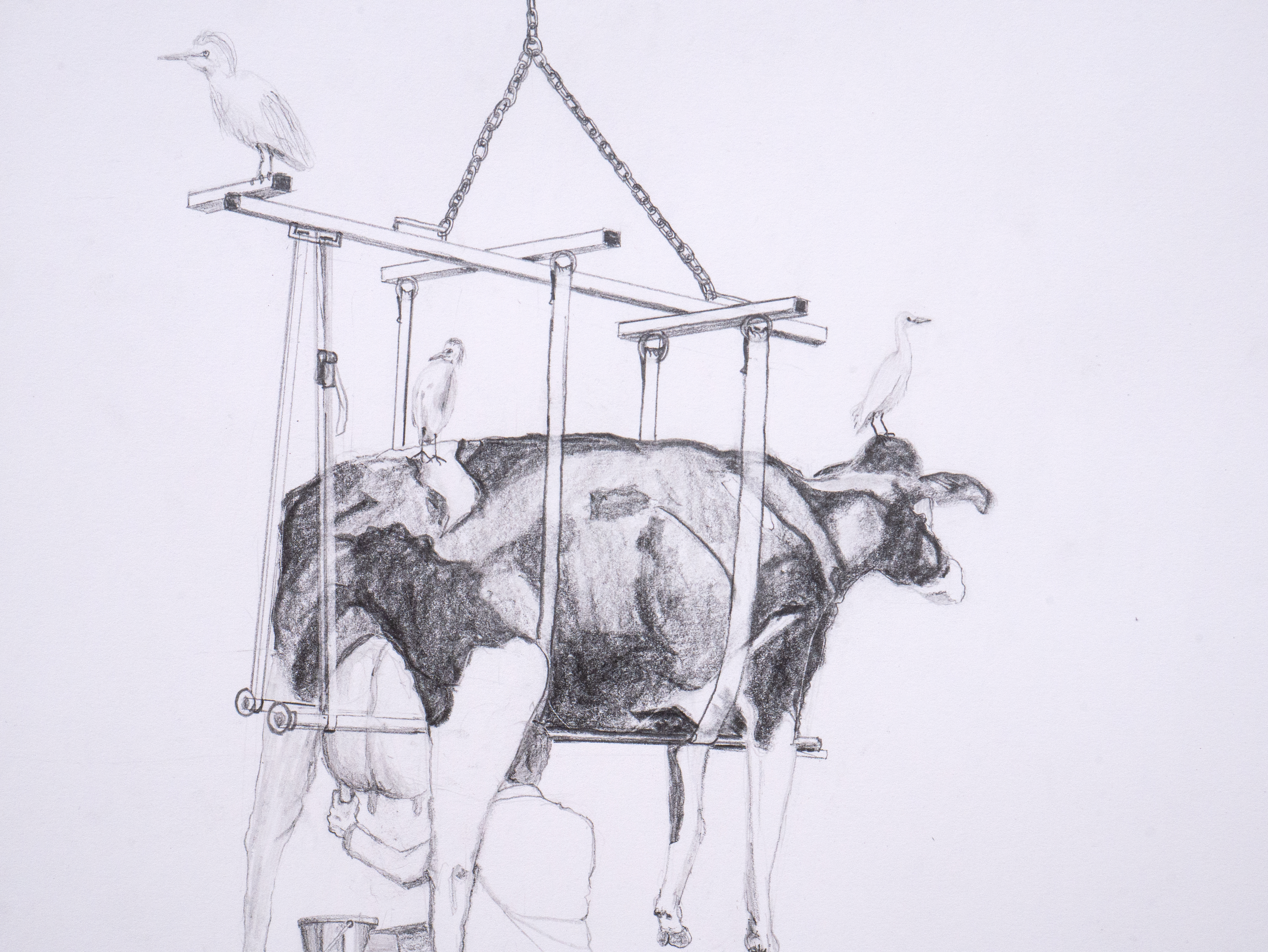 cow is drained by a human for its milk. The milk is so valuable to the human
